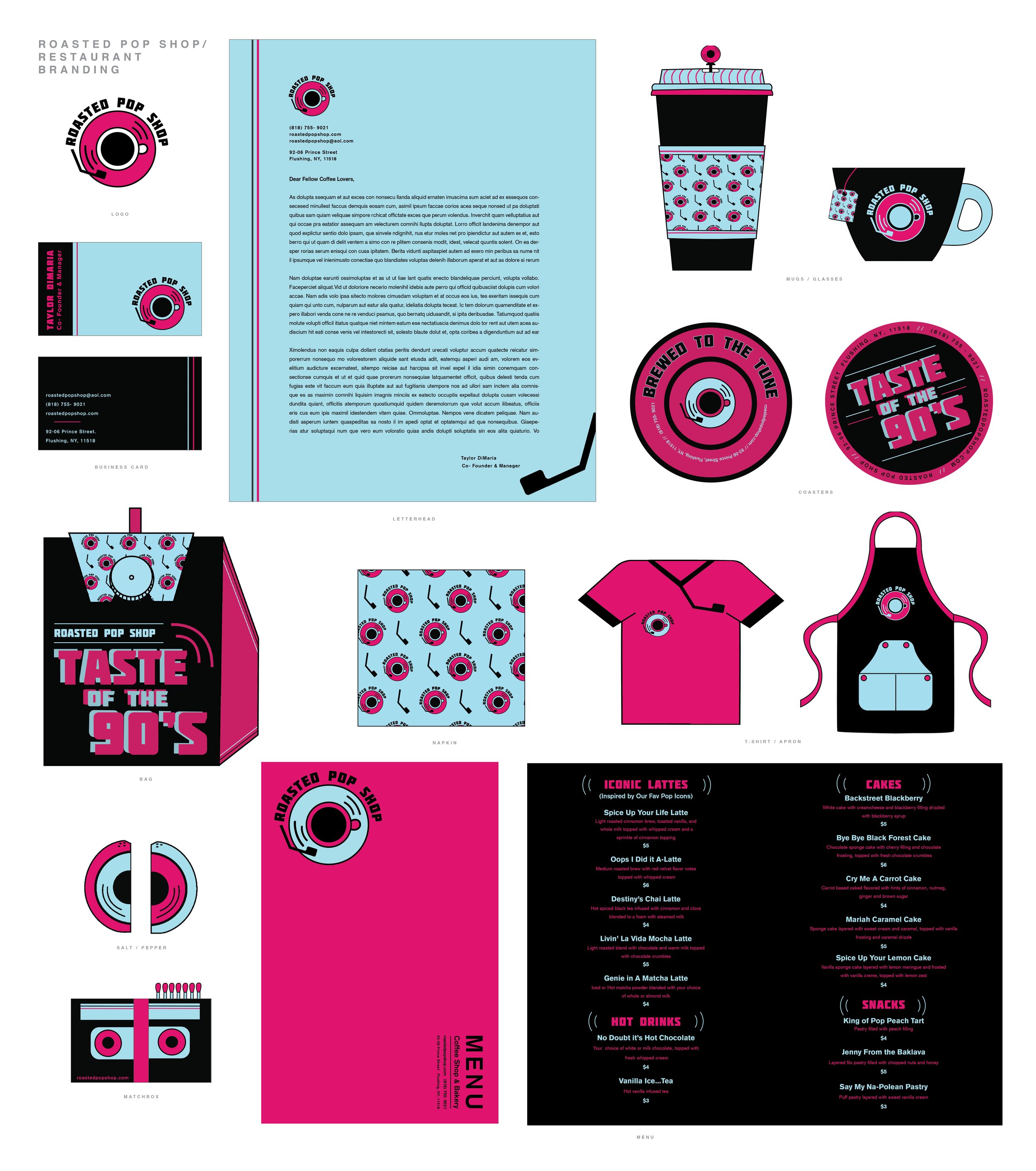 Roasted Pop Shop is a coffee shop themed around Pop music icons from the 90’s offering a unique experience where customers can engulf themselves in a retro aesthetic and enjoy specialty lattes and desserts inspired by the most influential musical icons.